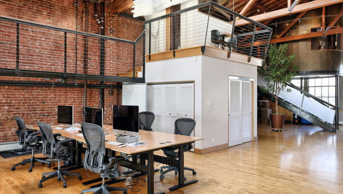 loft風(fēng)格辦公室二樓休息區(qū)設(shè)計(jì):總經(jīng)理坐在此處可以欣賞到整個(gè)空間,這也是設(shè)計(jì)師給總經(jīng)理的一種福利,做為總經(jīng)理來說,壓力自然不會(huì)小,坐在此處喝喝咖啡、看看書,也是一個(gè)不錯(cuò)的減壓方式。