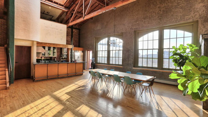 loft風(fēng)格辦公室交流區(qū)設(shè)計(jì):四根柱子形成一個(gè)大約正方形的空間,設(shè)計(jì)師利用無形的空間將休息區(qū)域安置在其中,無形的空間也讓彼此的交流更加順暢,在這里既可以欣賞到整個(gè)空間,又獨(dú)立于整個(gè)空間之外。