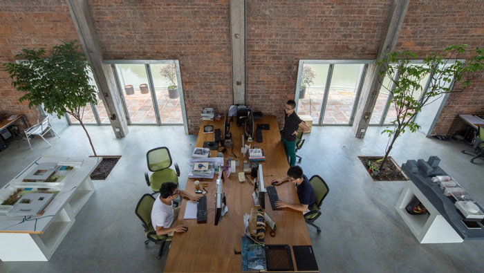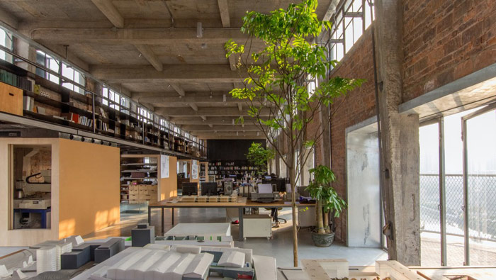 本次廠房LOFT風格辦公室裝修設計案例講解到此結束,在本次辦公室設計中,設計師利用開放式的設計布局,其中種植小型樹木來綠化空間,鋼結構的夾層也為工作人員提供了更多可能:非正式會議、討論區和休息區。