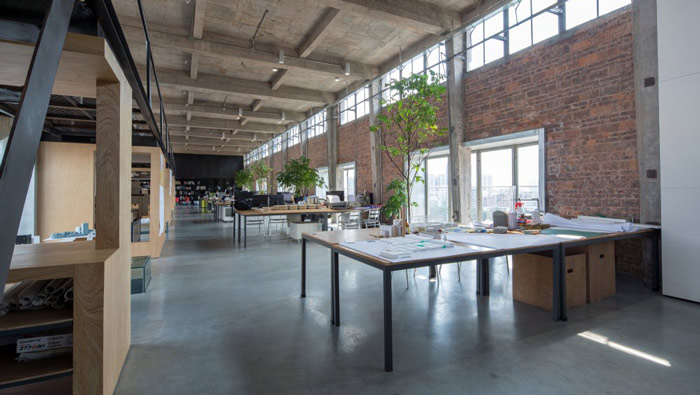 loft風格辦公室辦公桌設計:這里每隔一個地方就會有一道門,這也恰恰為設計師帶來靈感,兩個門中間的區域正好用來安置辦公桌,門與門在這里起到阻隔的作用,飲茶區、休息區無不彰顯企業對員工的關心與愛護。