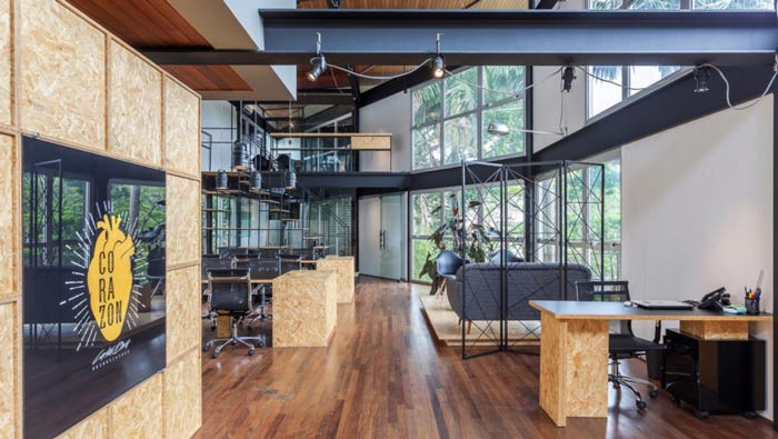 loft風格辦公室設計:當我們坐在空間中的時候,可以清楚的看到外界的風景,這也是設計師設計的一部分,設計師希望通過這樣的設計模式,保持室內的活力,讓勞逸結合融入到工作中去。
