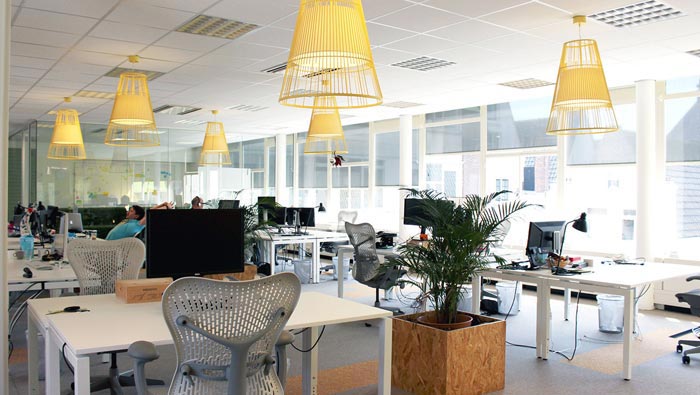 辦公區域的設計:此次的設計為尊重每一個員工而設計,在設計中設計師對于辦工桌的規劃是聯合卻又獨立,聯合是因為整個空間的聯動,獨立是因為辦工桌獨立而存在,讓每一個員工都有一片獨立的思考空間,在聯動之下統籌獨立、在獨立中盡顯聯動,顯示出設計師在空間布局之上的造詣。