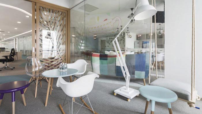 會議室的設計:此次的會議室布局相當有意思,設計師在設計中將會議室分為小會議室、大會議室、開放式會議室三個主要部分,這樣設計的目的就是為了適應各種形式的會議,設計師希望以此打破常規的會議室布局,滿足各種需求的會議格局。
