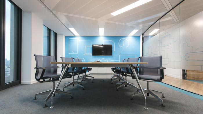 會議室的設計:在設計師看來會議是解決問題的途徑,故此會議在企業不斷發展的過程中有著十分重要的作用,同時設計師也注意到會議的時間周期十分長,很多員工都難以集中精神,往往隨著時間的推移效果越來越差,設計師為了解決這個問題,在設計中將室外景色引入室內,讓室外景色可以起到調節的作用。