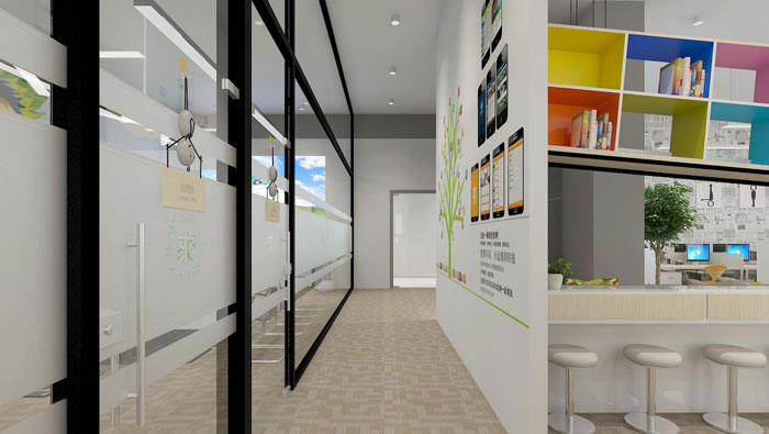 過(guò)道的設(shè)計(jì),設(shè)計(jì)師主要解決的問(wèn)題,就是忽略,由于建筑本身的緣故,過(guò)道的面積顯得擁擠,設(shè)計(jì)師利用形象墻與玻璃隔斷制造一個(gè)忽視空間,讓人忽視空間本身的缺憾。