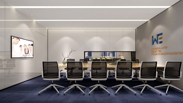 會(huì)議室的設(shè)計(jì),設(shè)計(jì)師采用取中的設(shè)計(jì)手法,會(huì)議桌椅的取中擺放可以使空間達(dá)到一種動(dòng)態(tài)的平衡。