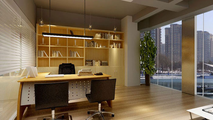 總經理辦公室的設計,設計師在設計的時候采用三分空間的設計手法,一分擺放柜區域、二分辦公區域、三分接待區域,使空間更加適合總經理的辦公需求。