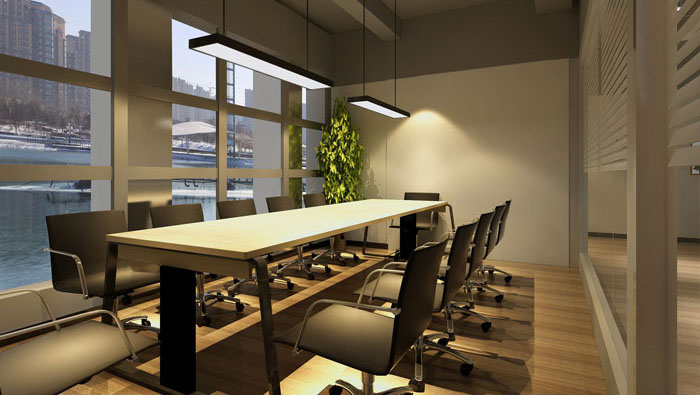 會議室的設計,設計師在設計的時候對空間采用視覺的延伸,主要就是外部空間的引入與軟裝的搭配,一則滿足企業對空間的需求,二則通過對會議桌的加長,促進加強空間對于會議人數的承載能力。