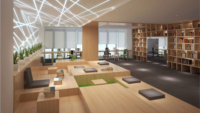 辦公區域的設計,設計師在設計的時候,采用勞逸結合的設計書法,一邊是辦公區域,一遍是休息學習區域,讓員工在工作的過程中全面提升自身。