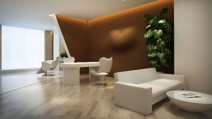 前臺的設計,設計師在設計的時候,整體采用極簡的設計手法,其一就是對企業LOGO的設計,其二就是前臺的創意設計,其三就是空間的點綴。