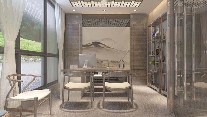 本次中式風格辦公室裝修設計案例講解到此結束,設計師在設計中,充分結合了室內結構與室外景色的雙重優點,讓室內在一定程度上做為室外的延續,增加內部空間的自然屬性與中式風格進行有效的結合。