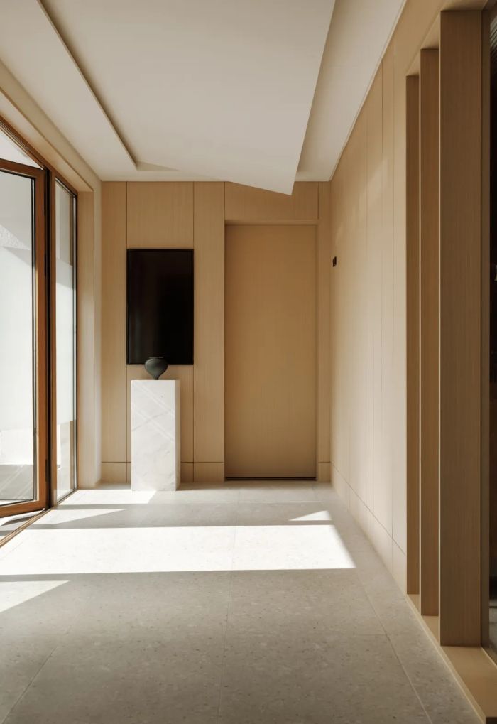 西湖作為傳統杭州和當代新城之間的自然過渡,滋養著精神探尋的深層意志。闊石板會所在西湖峰回路轉的闊石板一隅,帶著對地理多樣性與生活復雜性抽絲剝繭般的耐心,嵐禾設計與業主完成了一次共創。它關乎人、自然與建筑的交融,更關乎都市人是否可以重新界定獨處與共享的邊界,在辦公與居所日漸模糊的定義中生長出一方新的精神駐地。