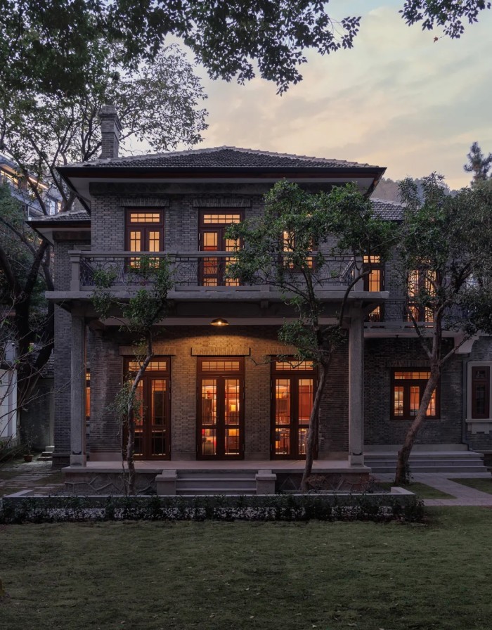 接到業(yè)主的委托來到現場,屋前是西湖北里湖的波光,屋后是香格里拉酒店的燈火。一座二層四開間的花園小樓,青磚清水墻坡頂平瓦四落水設計,門窗飾以新古典風格的門套和窗套,共同勾勒出一幅經典民國畫卷,心中感到莫名的敬畏與喜悅。
