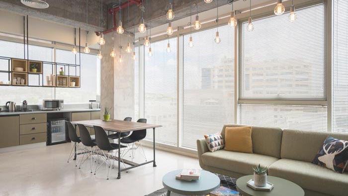 茶水間的設計:此處位于空間的內(nèi)部空間之內(nèi),設計師將此處安置在此處的目的就是為了給企業(yè)打造一個安靜、溫馨的休息場所,此處的采光極好,可以讓員工在此處休息加曬日光浴,曬出心中的壓力同時增強抵抗能力,讓員工可以身處溫暖的日光當中使自身得到升華。