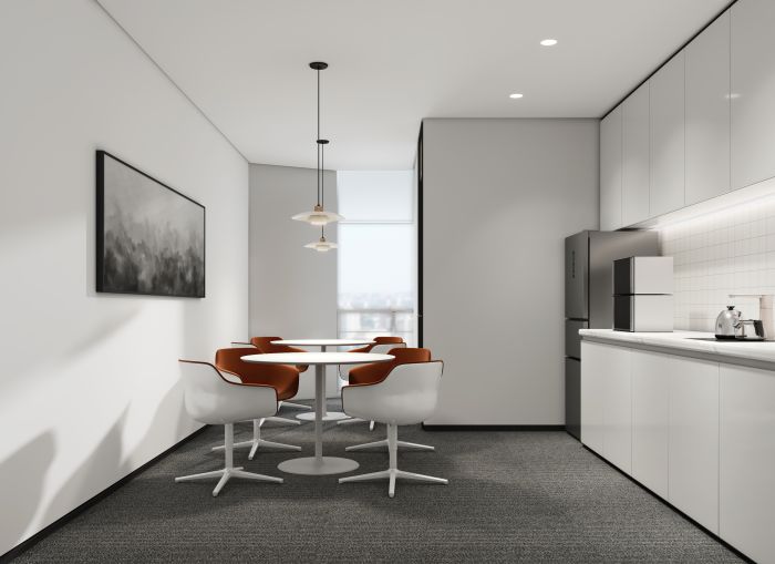 項目主要包括前臺、可以容納60人的辦公區,一大一小兩個會議空間、四個獨立辦公室、洽談區和兩個休息區。