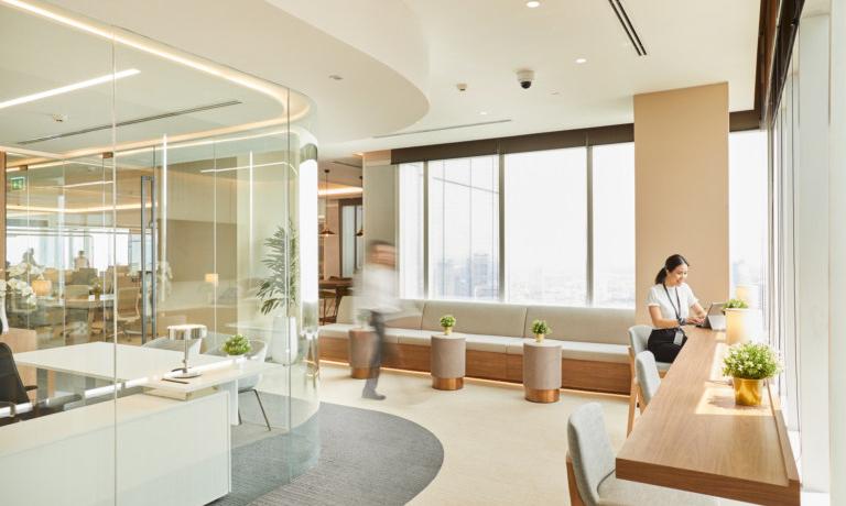 這次帶來一家投資管理辦公室裝修設計案例。空間面積860平方米。擺脫了傳統,接受了現代、時尚和優雅的辦公理念,這是一個適合于滿足高端客戶需求的場所。 一家傳統的公司--推向了一種現代的辦公理念--有酒吧,有電源插座的長長的臺面,還有一家有視野的咖啡館。其結果是,辦公室設計極為實用和靈活,配有清晰的辦公桌,使所有工作人員都能最大限度地利用日光。