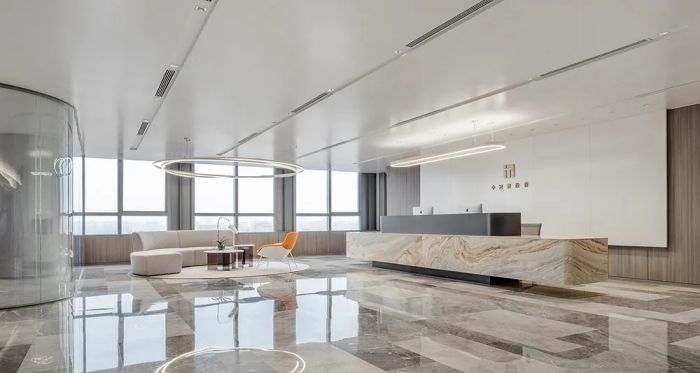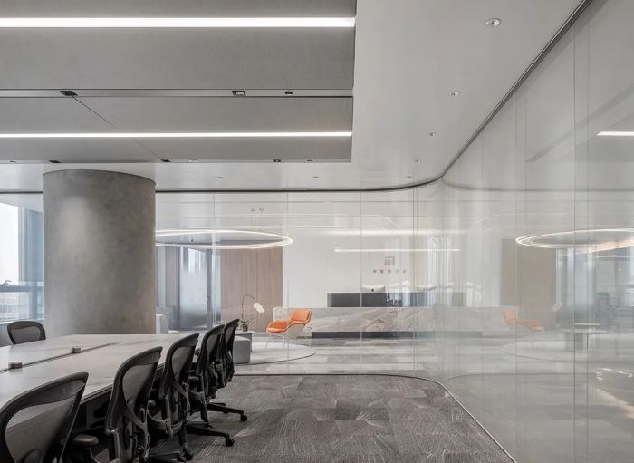 這是一家投資公司的總部辦公室,空間有2000方的面積??臻g的設計主題為“雅”、“靜”、“潤”,設計師創造了一個能讓訪客和員工感到寧靜、優雅,并愿意停留的舒適環境。