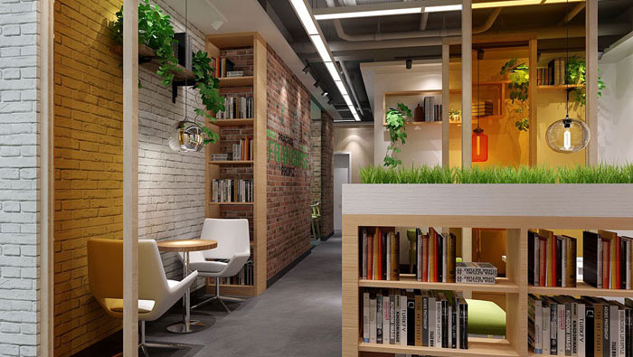 閱讀區域的設計,設計師首先追求一種寧靜的感覺,同時以過道為延伸,在配合特殊的燈光效果,為整個空間增添玩味。