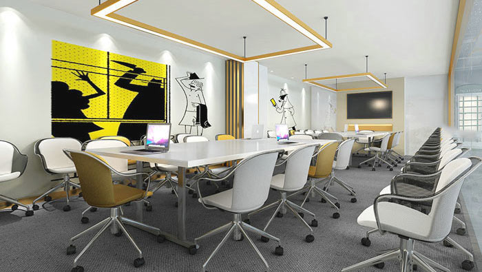 本次傳媒學院辦公室裝修設計案例講解到此結束,在設計師看來每一個設計都是單獨的,對于其他的項目只可在一定程度上進行借鑒與修改,設計師希望為學院打造一個充滿活力與激情的辦公場所。