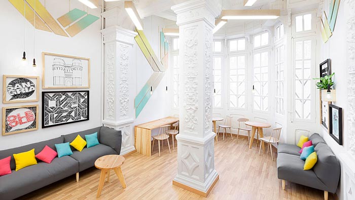 本次為英語培訓機構辦公室裝修設計項目,辦公室設計面積為183平米,在辦公空間設計中共包含三個教室、一個教師辦公室和休息室,在教室和休息區的設計上,設計師都保留了建筑的原始風格,在辦公室與教室的設計中,設計師盡可能將對空間的干預降到最低。
