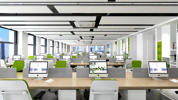 科技辦公室辦公區(qū)設(shè)計(jì):設(shè)計(jì)師將空間的設(shè)計(jì)比例定義為1:8:1,兩邊是過道保證空間的暢通,除去過道就是辦公區(qū)(比例中的8),其目的就是在保證效果的同時(shí)保證空間的需求。