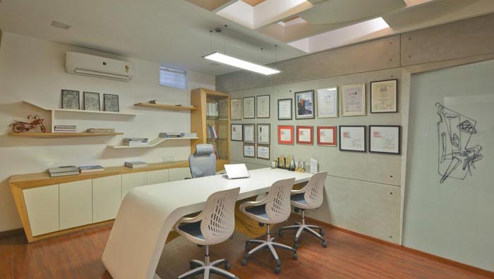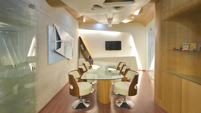 設計院院長辦公室的設計:設計師在設計的時候,與院長做了細致的交流與探討,雙方經過討論產生了激烈的知識火花,最后雙方約定將空間設計為宜家宜公的融合場所,這樣的設計首先就是空間氛圍溫馨、寧靜,其次就是空間流線型的辦公造型,給人以舒適之感,同時流線感也代表其無以倫比的線條感,這樣的線條感對于創意的產生有極其重要的推動作用。