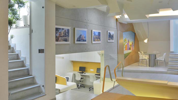 辦公區域的設計:設計師在設計的時候,將其安置在錯落有致的地下空間,在設計師看來這樣的設計可以將空間很好的進行區分,在此處給人以柳暗花明又一村的感覺,讓人憑空產生別有洞天之感,忍不住想要觀賞整個空間,激發客戶強大的好奇心,在好奇心的引導之下逐漸去了解企業的一草一木。
