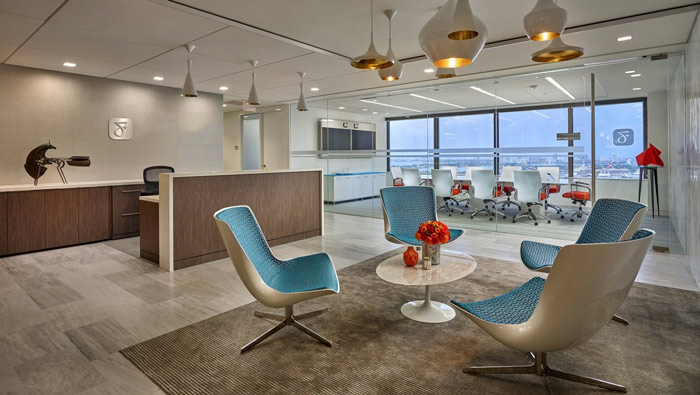 本次為律師事務所辦公室裝修設計案例,設計面積1110平方,在辦公室設計中,設計師首先確定現代簡約的設計風格,其次是強調空間光的應用,在設計師看來光是萬物生存的必要條件,設計師希望員工在室內同樣可以受到光的洗禮,光的應用打破室內與室外的隔閡,光的引入讓空間更具有創造力。