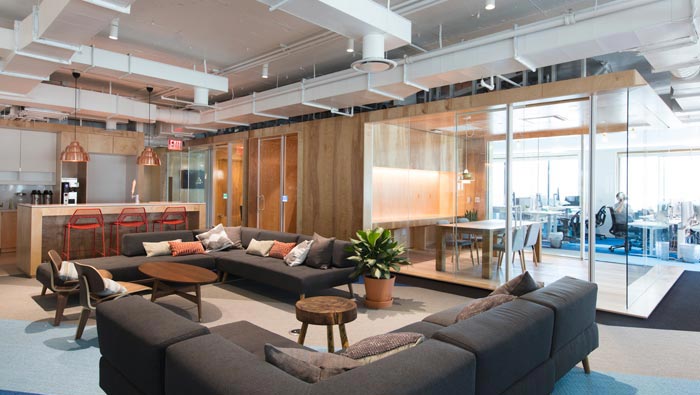 網絡公司辦公室茶水間設計:設計師在設計的時候,將其與休息區域相融合在一起,設計師希望員工可以在此處休息、交流、玩耍,光源透過透明隔斷射入室內空間,暖洋洋的氣氛充斥整個空間。