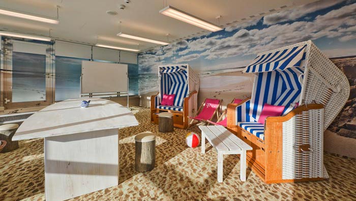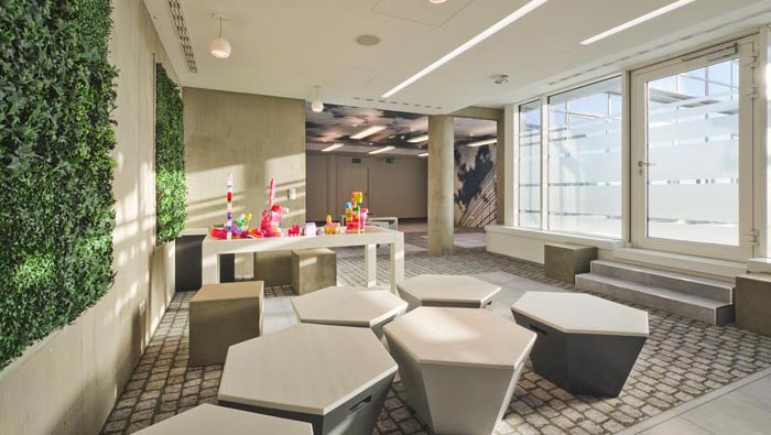 網(wǎng)絡(luò)公司辦公室娛樂區(qū)設(shè)計(jì):此處的設(shè)計(jì)別具一格,設(shè)計(jì)師將休息區(qū)域與游戲結(jié)合在一起,即可以玩耍,凳子即可以坐、又可以坐,而且在做的時候可以隨意移動,游戲的加入讓空間有一種輕松的氛圍,讓客戶與企業(yè)在此處交流的時候,為空間的設(shè)計(jì)所俘獲。