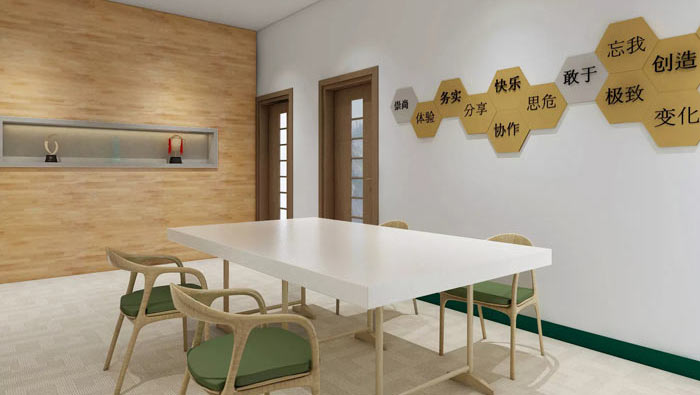 國家電網辦公室接待室裝修:崇尚、體驗、務實、分享、快樂、協作、思危、敢于、忘我、極致、創造、變化這些字是企業的凝練,從字體中可以看到企業從小到大的經歷。