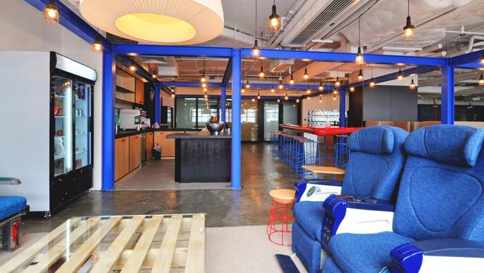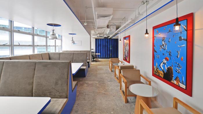 休息區域的設計:此處被設計師安置在一個獨立的空間之中,在此處員工可以不穿鞋在地上來回跑,也可以在地上打滾、嬉戲,同樣可以躺在座椅上觀看自己喜歡的節目,此處就是讓人恢復童心,讓童心為我們尋找回那丟失的快樂。