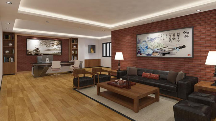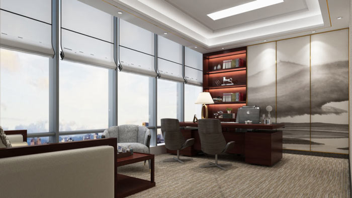 公司經理辦公室設計:每一個人都有自己的興趣愛好,總經理也不外如是,此間主人喜歡書法、喜歡古典文學,故此設計師在設計中,希望打造一個辦公兼容學習的辦公空間。